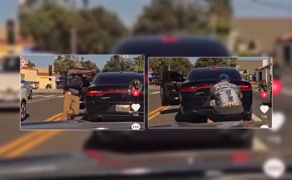 A video circulating on social media shows an agent pointing a gun at a citizen trying to take a photo of his unmarked civilian car (Photos – Screengrabs)