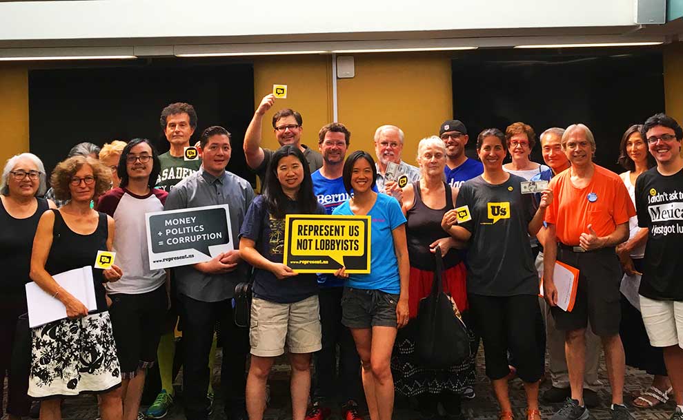 Since the presidential election, there have been a variety of new groups that have cropped up to ‘resist’ Trump’s agenda (Indivisible), to implement Medicare health care for all Californians (Healthy California), and to promote national campaign finance reform (WolfPac), but there is little organized activism to combat moneyed interests their corrupting influence in local politics. Represent Us San Gabriel Valley serves as the local chapter for the entire San Gabriel Valley, with current members from Alhambra, San Gabriel, Pasadena, Altadena, Temple City and El Monte.