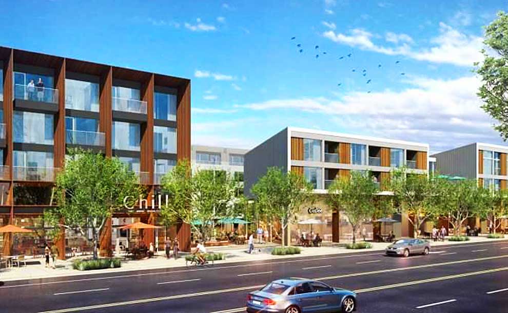 Then it was on to business, in particular the consideration of a massive 550-unit, multi-use project at 3200 East Foothill. The area, presently an industrial zoned space between the 210 freeway and Foothill, west of Hastings Ranch, is 8.5 acres of space to build structures to ease Pasadena’s housing crisis. The proposed development, by the Trammell Crow Company, will demolish 23 buildings but preserve several monuments redolent of the site’s previous use by Caltech and the United States Navy, including a torpedo monument and a water tank.