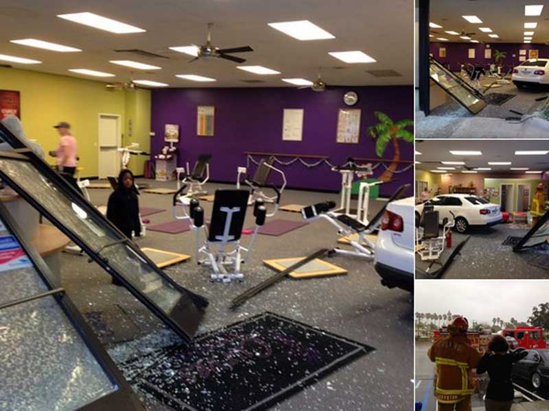 From LA County Sheriff’s Dept car vs. gym at Curves in Altadena. No injuries (Photo – twitter, @LasdDan).