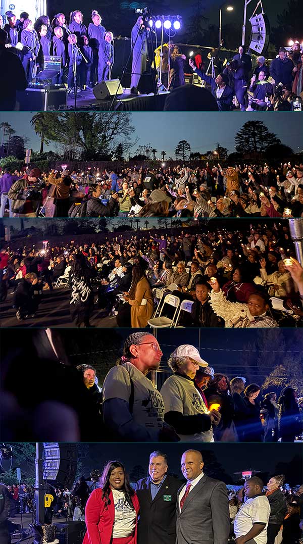 Another pastor, Pastor McFarland, asked those who had lost homes to raise their candles. Hundreds of flames rose together. When he called out, “Does anybody live in 91001?” the response came back strong and defiant