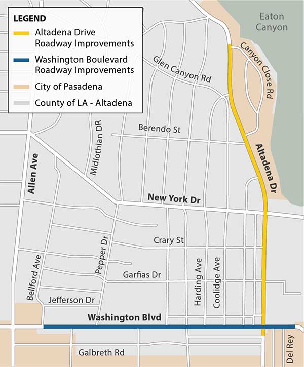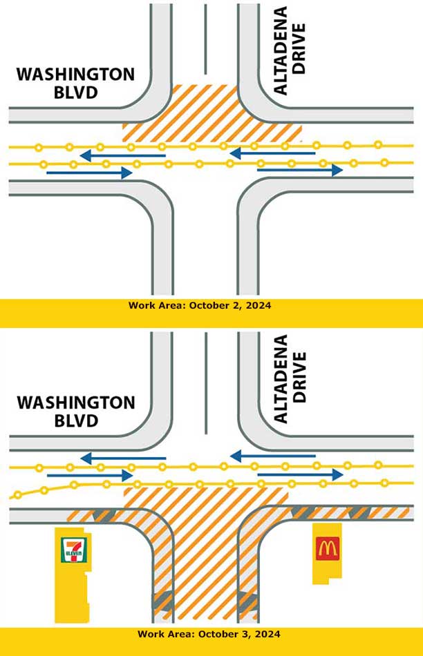 On the nights of October 2 and 3, be cautious on Washington Blvd. where it crosses Altadena Drive. And be prepared for traffic on Altadena Drive to be detoured.