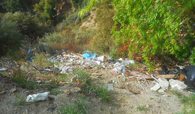 No one traveling from La Cañada to Palmdale could miss seeing it. It looks like a contractor hired to clean up a building site somewhere simply unloaded when no one was looking. The result: a lengthy eyesore of plastic and paper, toilets (!) food containers, beer cans, rubble, broken planks, you name it.