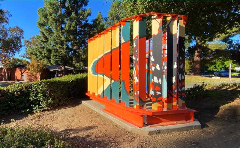 The artwork “Calm a Little Soul” by artist Karen Reitzel was first exhibited in 2018 as part of the third iteration of the City’s Rotating Public Art Program. Following her untimely passing in 2021, the artist’s husband has generously donated the sculpture to the Hastings Branch Library, where it will pay homage to the nearby butterfly garden and inspire visitors for years to come.