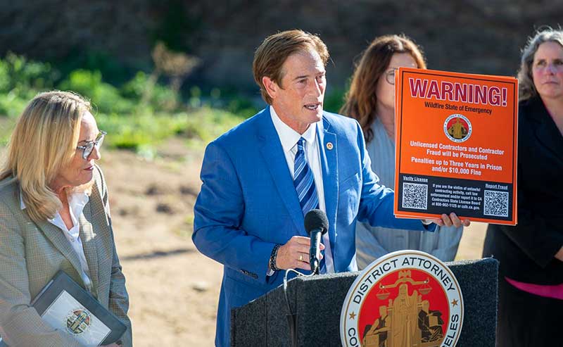 “We will not stand by while Eaton Fire survivors get taken advantage of as they try to rebuild,” Barger said, noting her support for the District Attorney’s action. She added that standing beside Hochman as the charges were announced underscored the county’s commitment to accountability.