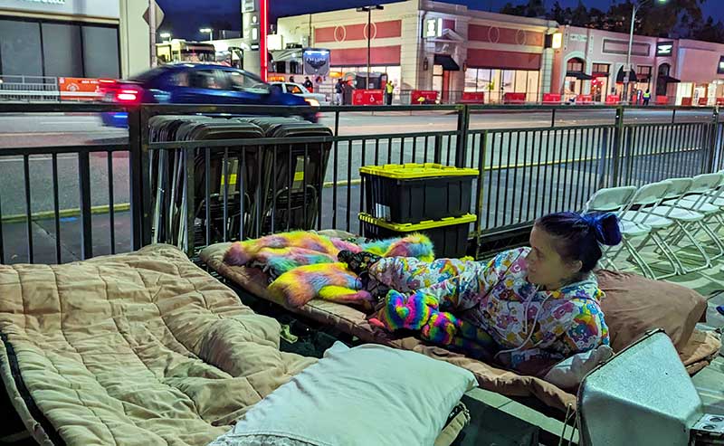 On New Year’s Eve 2023, we started strolling the famous Boulevard. It began to resemble a war torn zone. People bring all kinds of stuff to make their overnight stay bearable in anticipation of the Rose Parade on New Year’s Day.