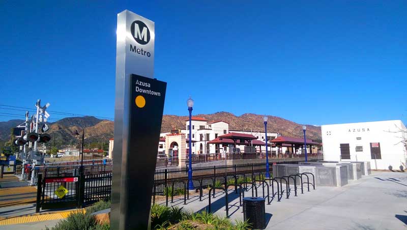 Bike racks and lockers are available at the new Gold Line Stations (Pictured Azusa Downtown Station) (Photo – Marc Corti, ©ColoradoBlvd.net).