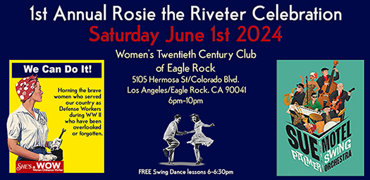 The 1st Annual Rosie the Riveter Celebration will have live entertainment from Sue Palmer Swing Motel Orchestra, with feet stomping Boogie Woogie from the 1940s and the Andrew Sisters.
