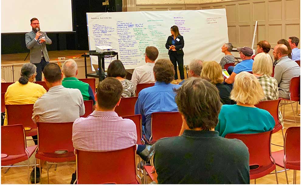 About 50 interested Pasadenans went to Pasadena Presbyterian Church to hear the latest progress from, and give their ideas on designing to, the City of Pasadena and its consultants on the future public neighborhood park in the Playhouse District.