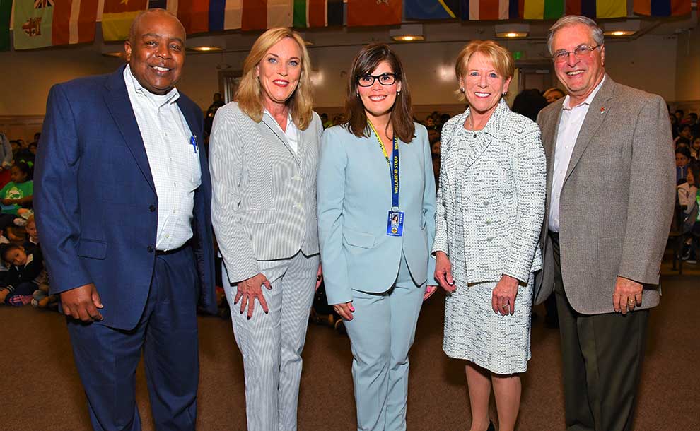 (L-R) PUSD Superintendent Brian McDonald, Supervisor Kathryn Barger, Willard Principal Dr. Angela Baxter, Presiding Justice Lee Smalley Edmon, Mayor Terry Tornek (Photo – Hilda Ramirez Horvath)