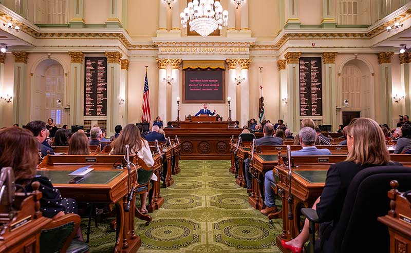 Speaking before a joint session of the Legislature, Newsom highlighted the state’s economic strength, record education spending, climate leadership, and recent declines in crime and homelessness. He contrasted California’s policy direction with actions taken by the White House, accusing the federal government of “protecting the powerful at the expense of the vulnerable” and undermining democratic norms.