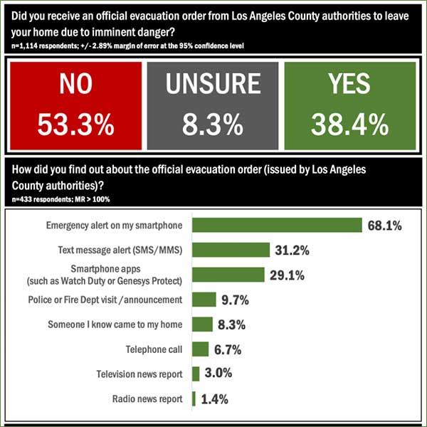 - 46% of the survey respondents said the primary reason for not leaving immediately upon receiving an evacuation order was because the order arrived too late.