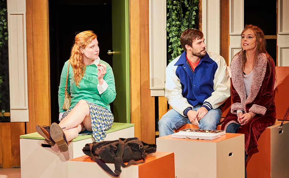Shepard’s Robert was energizing and engaging, one of those fun guys to hang with, but not shallow, his sincerity came through whether he was partying or studying or just being there for his friends. Cornelisse’s Amy was electrifying, played intuitively by being just a touch louder than the others, with her brassiness and attention-grabbing entrances distracting us, at first, from the vulnerability and heartbreak below the surface. Comartin and Pollock weave their thoughtful truth throughout, and the result is an intriguing and thoroughly enjoyable experience.