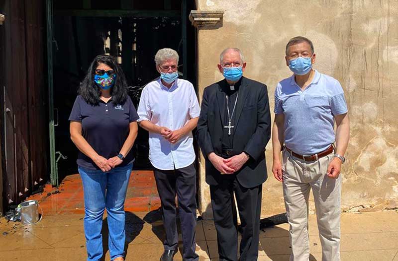 (L-R) Mayor Denise Menchaca, Father John Molyneux, Archbishop José Gomez and Councilmember Tony Ding at San Gabriel Mission (Photo courtesy of Denise Menchaca)