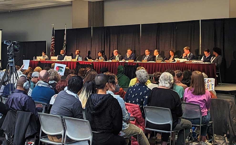 The Pasadena City Council meeting on March 18 was held at the nearby Pasadena Convention Center because of the correctly anticipated turnout of hundreds who want to weigh in on a resolution to call for a ceasefire in the Israel/Hamas war.