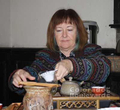 Soothing music filled the air along with potluck dishes and a big assortment of cookies swap. A Seed/Plant Swap table greeted guests outside while a fun craft corner of Holiday Cards was set inside next to a presentation of aged fine Chinese tea.