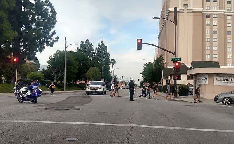 6:45 pm – Pasadena Police directs traffic at Walnut and Euclid while more people were still showing up (Photo – ©ColoradoBlvd.net)