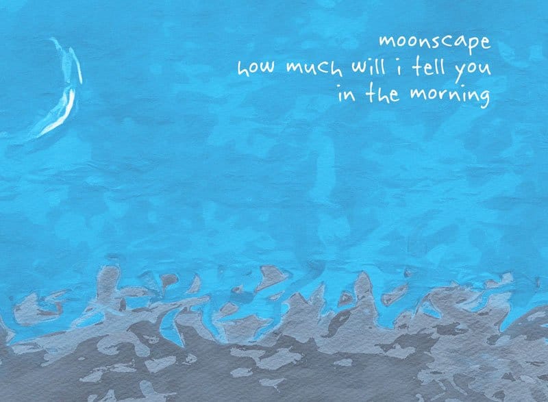 Gerry Jacobson says he wrote this at a “recent retreat with the Limestone Tanka Poets. An old homestead in the country just out of Canberra, Australia. Convivial dinner. Log fire. Craving the night sky I pick up my sleeping bag, wander outside and find a place to sleep trying to avoid sheep dung. Wake up a few times. Moonset. Later the glow of dawn. When I really wake, the sun is trying to break through. Roll up the swag and wander in for shower and breakfast.”