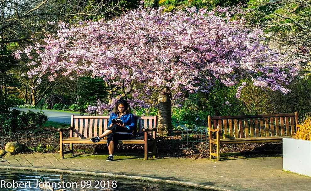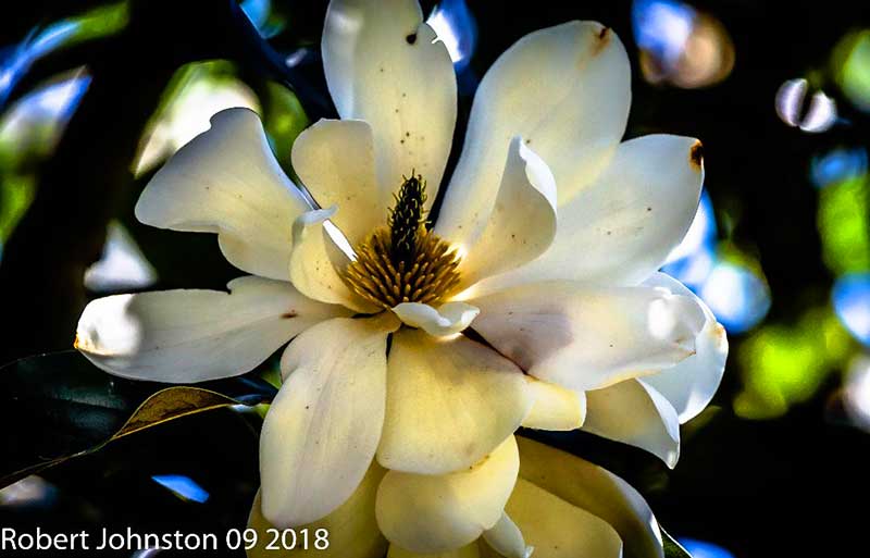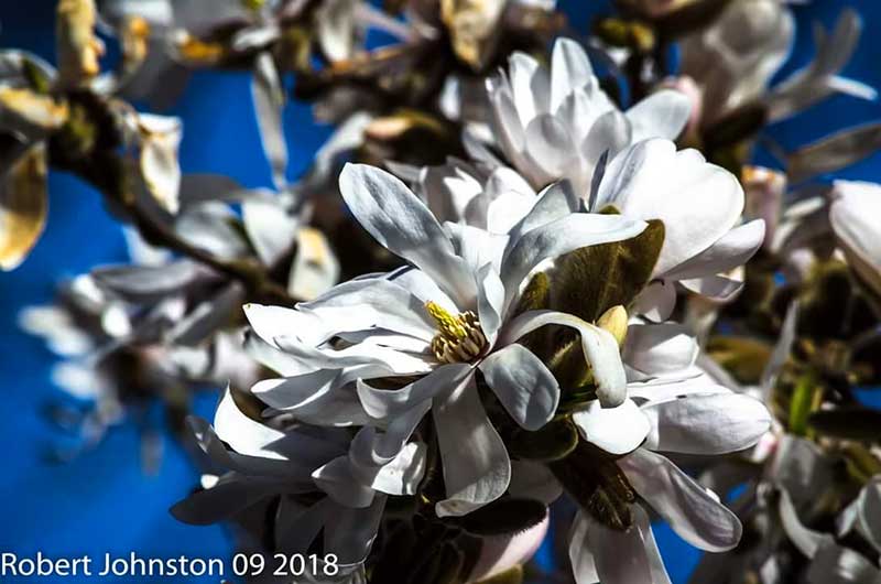 Robert Johnston is a poet, artist, and philosopher who explores the natural world around him. His subtle artistic insights inspire a deep sense openness. His small poem is indeed “more than enough” to inspire a “falling apart” of the ordinary, to expose the extraordinary. He says: “Springtime in New Zealand, where I live, far to the south, in Dunedin: Uncountable magnolias bloom in the public gardens, burst from downy buds, petals flopping open voluptuously, each a beautiful woman already scarred in some degree by marks of death.”