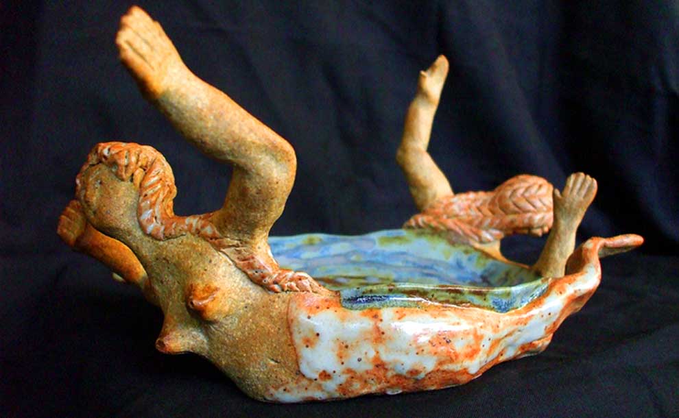 Toti O’Brien, Los Angeles, California: “I have grown up facing the straight of Messina, with eyes full of ocean and ears full of fabulous sea-creatures. Mermaids were natural companions to me. I have never met Disney’s Ariel during my childhood, but I have loved Andersen’s little mermaid—she is such a strong, determined, brave and alas tragic character. Once, an uncle went to Copenhagen and sent me a postcard with a bronze girl sitting on a rock, guarding the entrance to the harbor. In the harbor of Messina, a Madonna welcomed the traveler. I like her, but to have a mermaid instead seemed such a marvelous thing! Build a monument to a fairy tale heroin—a young girl, at that—make her the symbol of town, what a great idea! So I wished to make more and more ‘sirenette’, of my own.” See Toti O’Brien’s work on her website.
