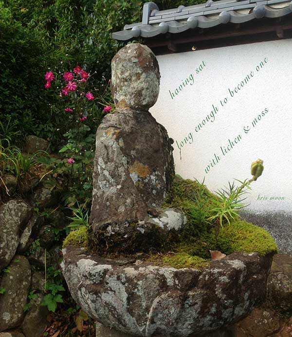 kris moon (kondo) is an artist/poet living by a mountain stream which becomes a raging river during typhoons in Kiyokawa Village. She went to Japan by ship in 1972 where she has lived most of her life. “It is at the turnoff of the main road going through the village, to go to my place, not even 4 minutes from where I live.”