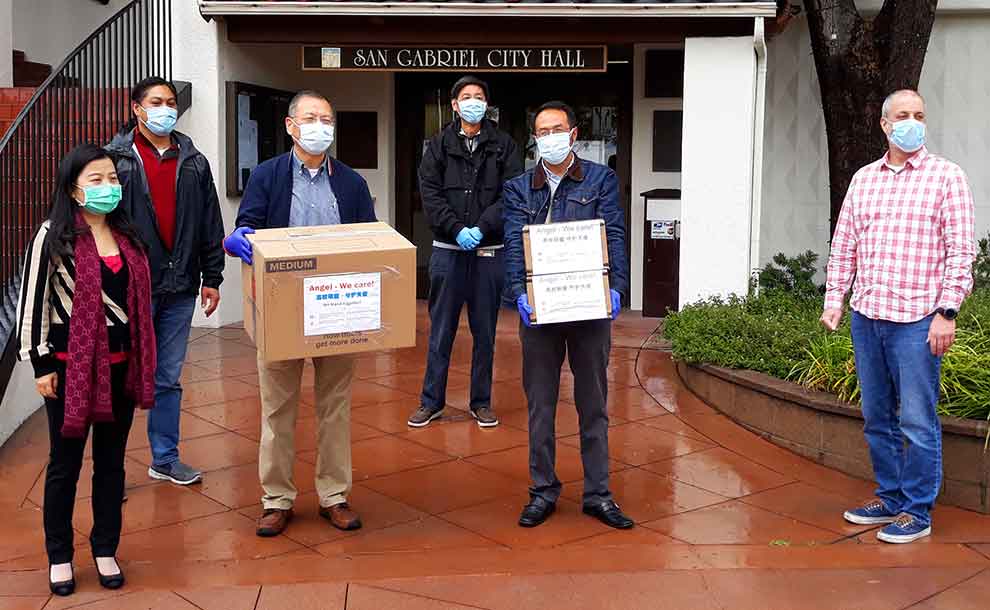 San Gabriel City Hall, Medical Center, Police Department, and Fire Department were recently the recipients of surgical face masks and hand sanitizer donated by the “Angel-We Care” charity donation campaign, sponsored by the Chinese University Alumni Association Alliance of Southern California (CUAAASC).