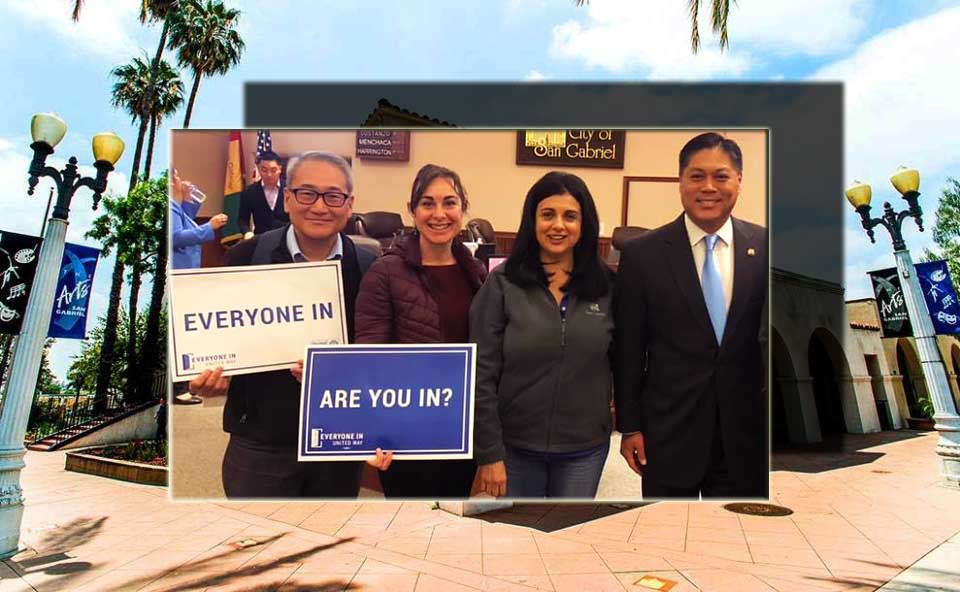 (L-R) Eric Sunada, Founder of San Gabriel Valley Oversight Group; Teresa Eilers, United Way Everyone In Campaign; Vice-Mayor Denise Menchaca; Mayor Jason Pu