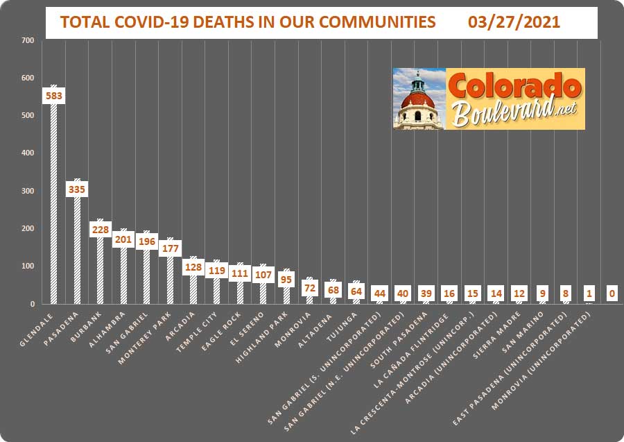 Total COVID-19 Deaths in our communities (as of 3/27/21):
