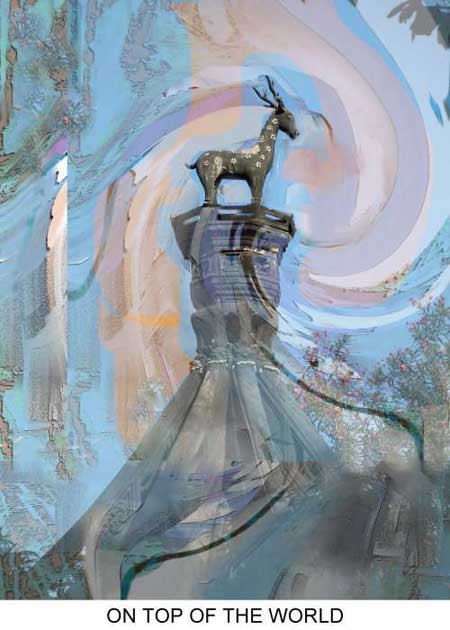 –“On Top of the World” photo is by Susan Dobay, a Hungarian artist who lives in Monrovia, CA. Her paintings, computer art work, including her previous paintings and her philosophic peace oriented images, inspire poets and musicians worldwide.