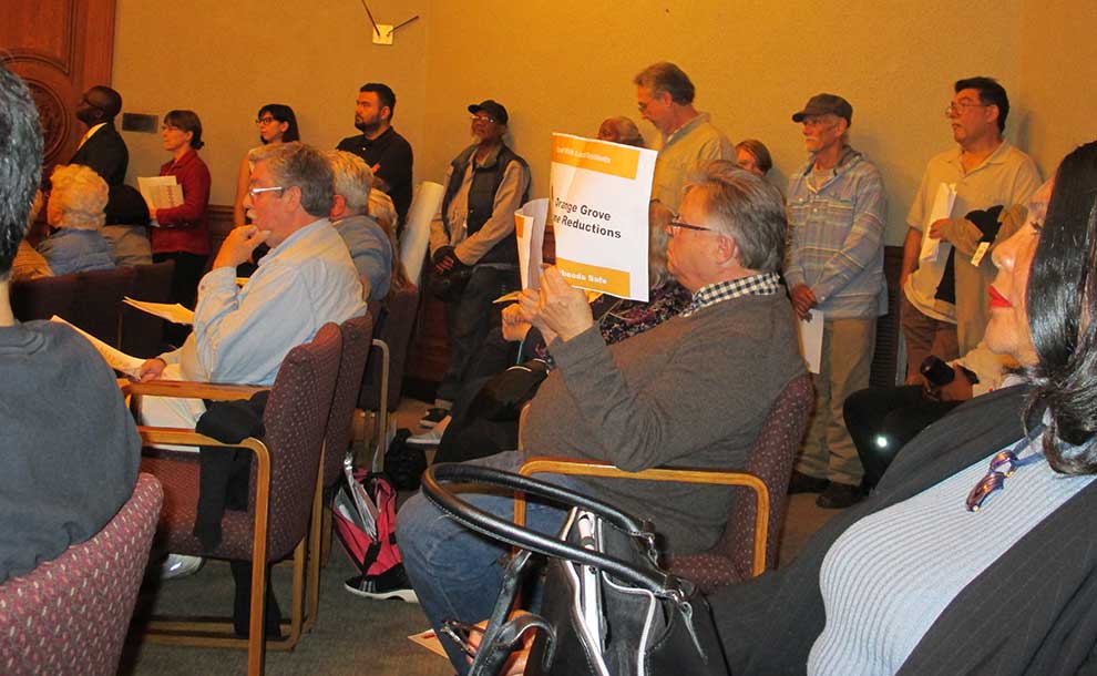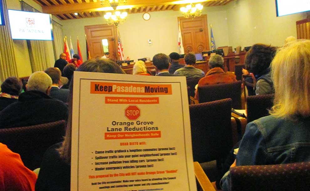 The Council’s decision to divide public comment before and after items on the agenda resulted that the first twenty minutes were spent on a dozen speakers, all of whom were concerned with the Orange Grove road diet, and most of whom were opposed to the proposal. Citing current traffic conditions and how this restriction could affect surrounding residential neighborhoods as speeders attempt to bypass the inevitable traffic jam, the speakers brought a variety of perspectives on why they believed it was a bad idea.