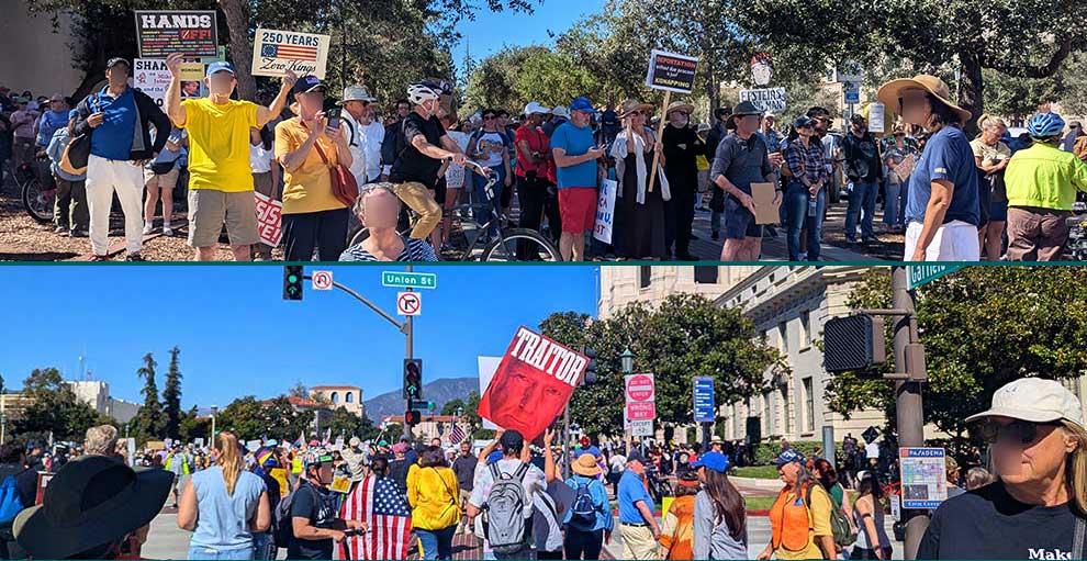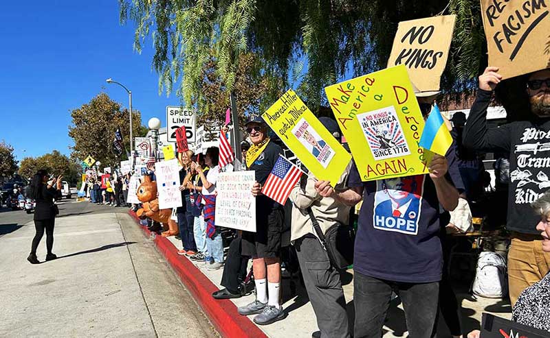 “The nationwide mobilization is in response to the Felon’s administration sending militarized agents into our communities, disappearing immigrants, and keeping the government shut down while families struggle,” said Colby, a Pasadena resident attending the rally. His comments reflected widespread concerns over threats to healthcare, civil liberties, immigrant rights, and community safety.