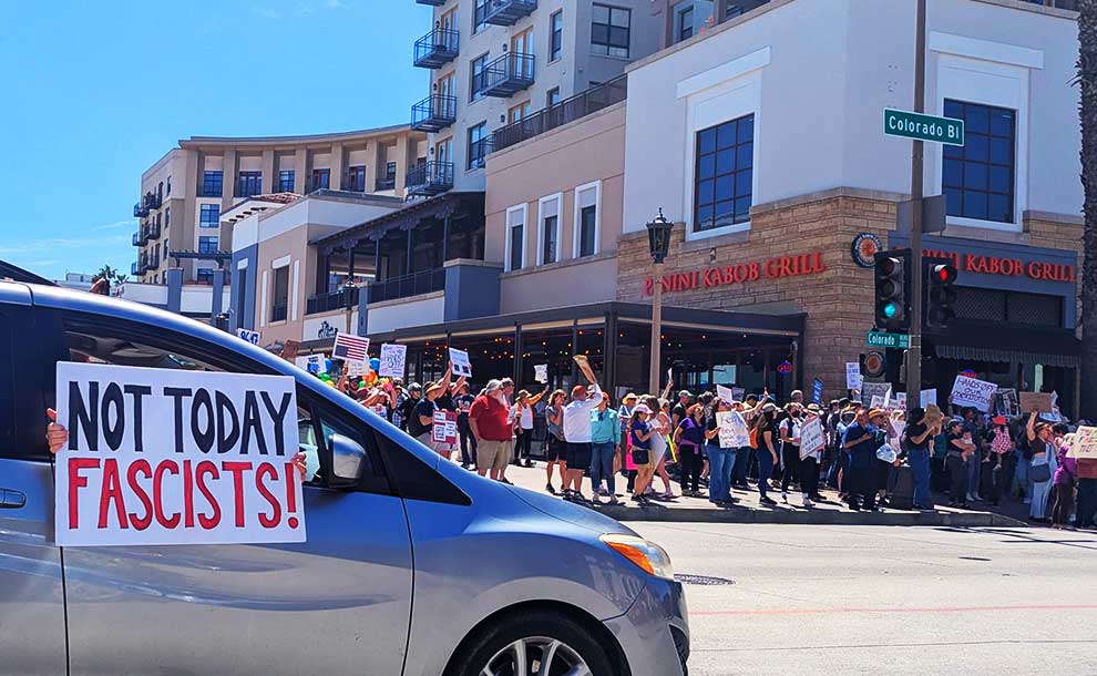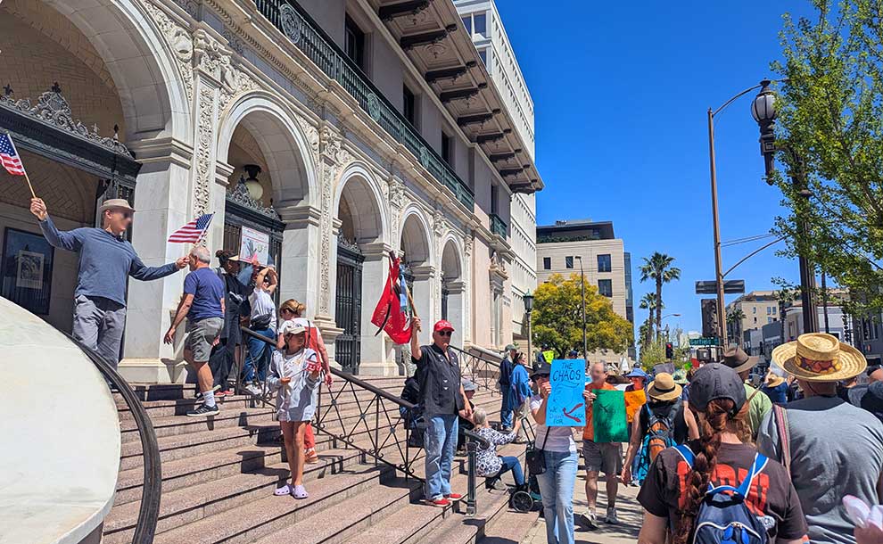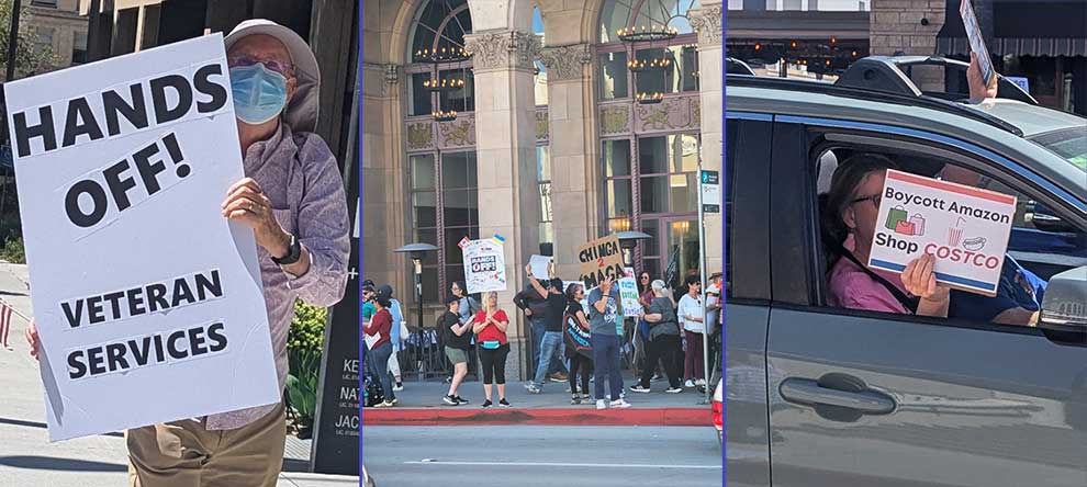 “We will not stand idly by while the rich get richer at the expense of everyday Americans,” one rally participant declared. “We are fighting for our future, for our healthcare, and for the promise that Social Security and Medicare will be there for us when we need them most,” said Tammy Silver, Pasadena City College Trustee. “We will be here every Saturday from 12-2. Join us to save our democracy.”