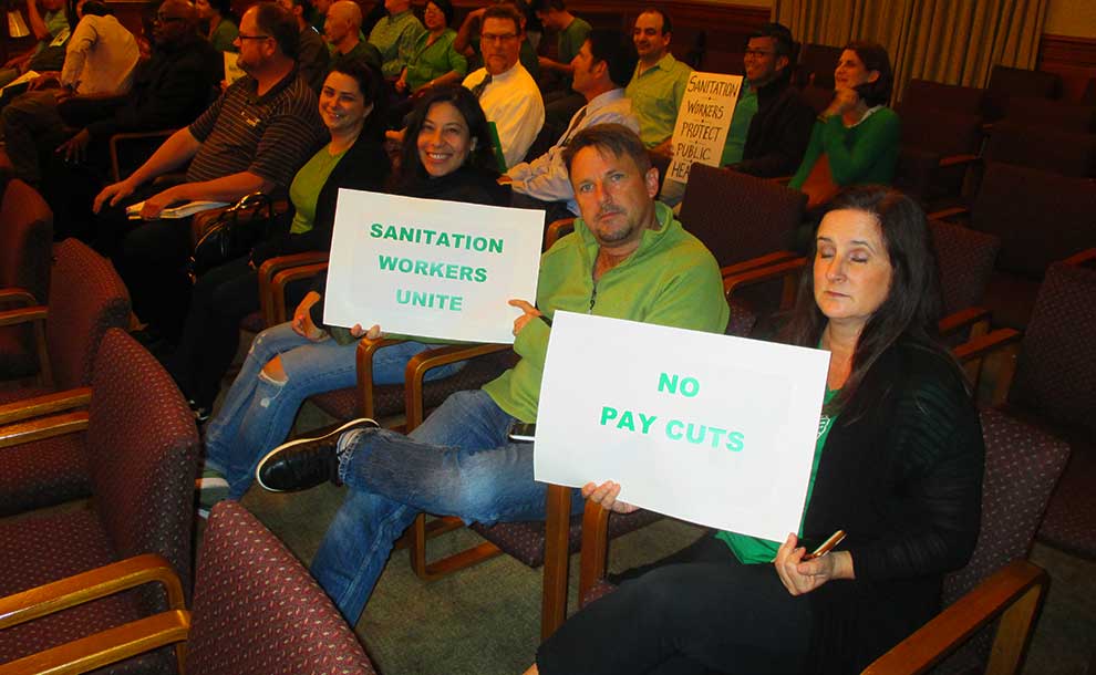 LA County Sanitation Workers showed up at Pasadena City Council meeting on Mov. 5, 2018 as part of a demand for a new contract (Photo – Garrett Rowlan).