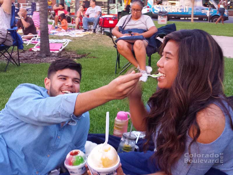 On Sunday evening, while the Japanese TV series “Gimme Gimme Octopus” was playing at the Armory Center for the Arts, DJ Dan Wilcox entertained the crowd at Central Park with his upbeat music infused with a touch of Middle Eastern flavor. Food trucks were there and a festive, yet relaxing, feeling filled the atmosphere.