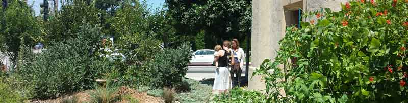Some folks were visiting the Throop Learning Garden when we arrived Sunday morning. Cherry tomatoes were in full bloom. Cucumbers and fresh herbs were readily available for whoever was helping that day. Then we were invited for a delicious vegan lunch in the hall.