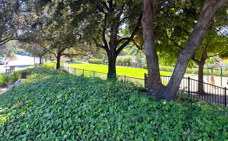 On the corner of Colorado Boulevard & Melrose is a grove of Oaks which provide beautiful shade to those who play at San Rafael Park. The Pasadena Department of Parks and Recreation has under planted these trees with Ivy. Ivy and Oaks have completely different watering needs, Ivy is also a very aggressive climber, often the limbs of the Oaks are wrapped with Ivy. The park also has these trees connected to irrigation which is often on when I drive by in the evenings. Does the city not employ an Arborist who knows best practices for these majestic trees?